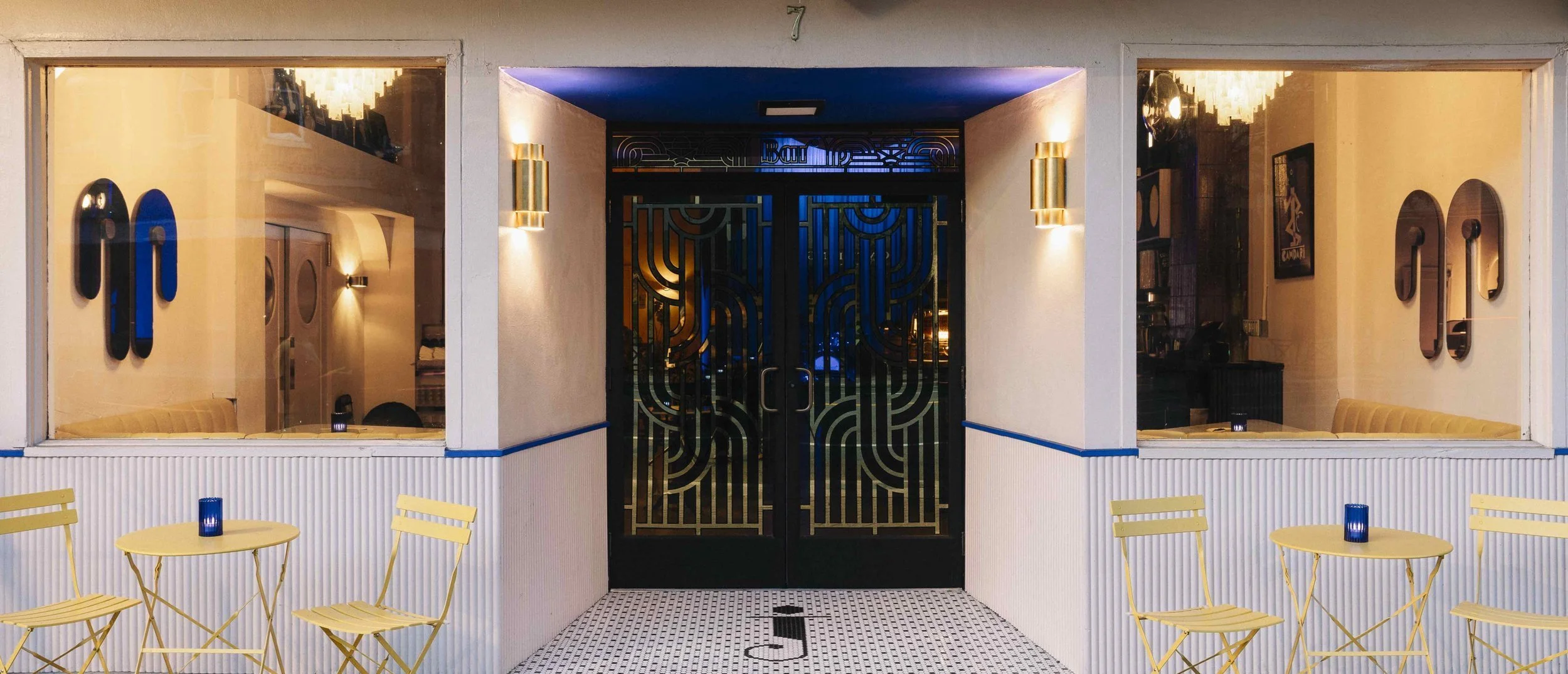 Gold leaf design on glass and logo in tile, photo by NativeHouse Photography, courtesy of Chinotto House